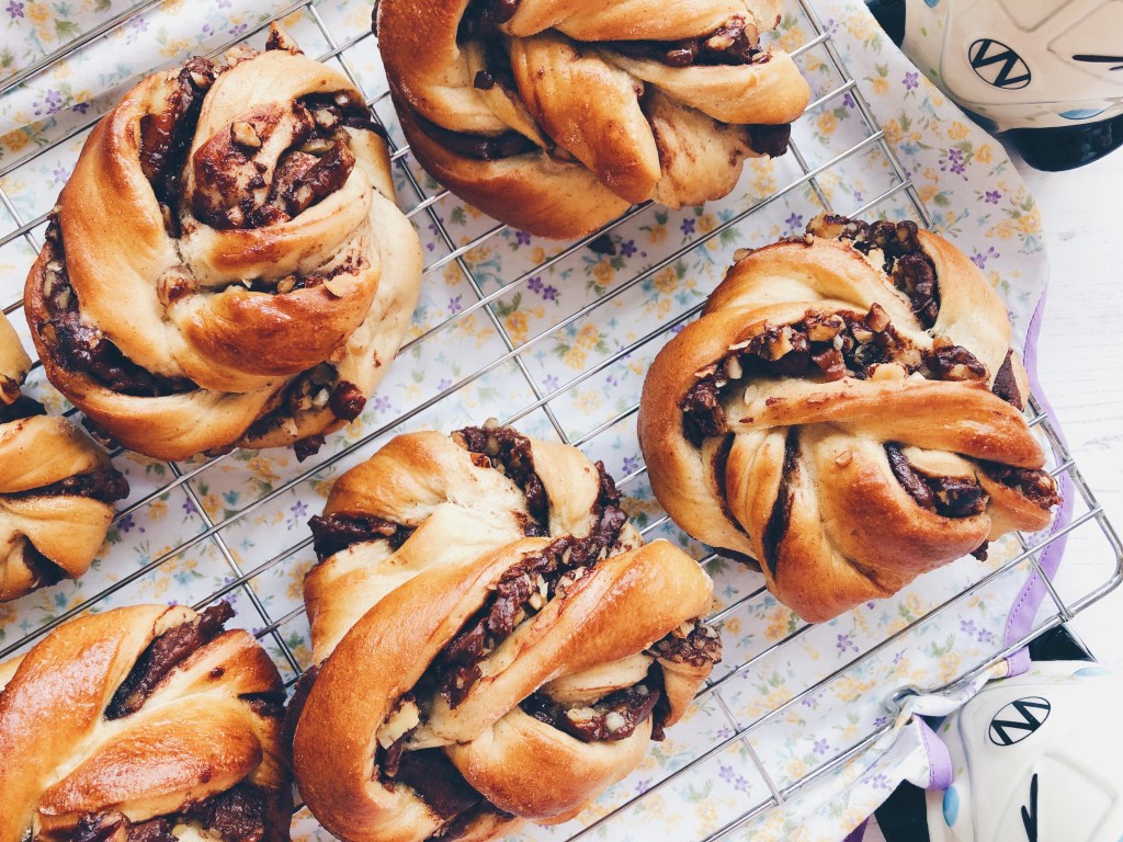 Actually, soon after starting to knead the dough, I realised that I had made a mistake with my milk measurement. I had added too much, so the dough was very sticky. I tried to remedy my mistake by adding flour, but I almost gave up, afraid it wouldn’t work. But after the first rise, the dough had a good consistency, and I decided to continue making it. I used Nutella and added hazelnuts and pecans. It eventually smelled really nice, tasted good and wasn’t bad at all. The recipe is amazing.