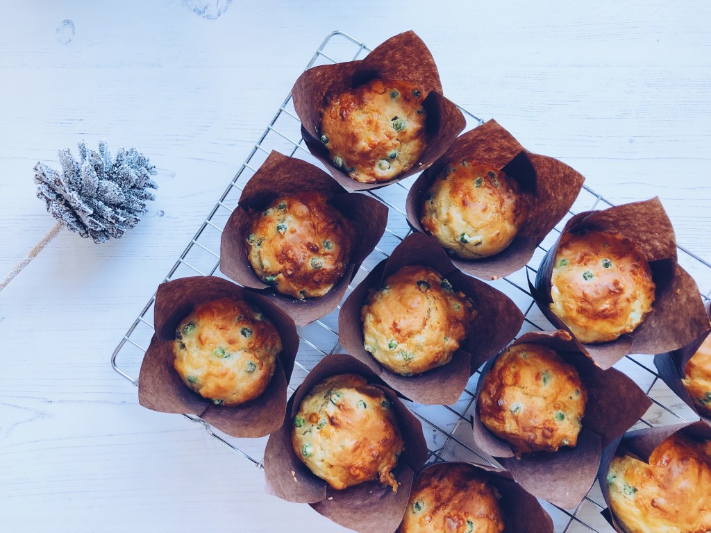 The combination of cheese with pea and the light texture of the muffins works really well with an aperitif like champagne. I’ve continued experimenting with this recipe, but I still need to improve the texture; more softness would be great. I added a half-and-half mixture of Parmesan and cheddar cheese. They always taste fantastic.