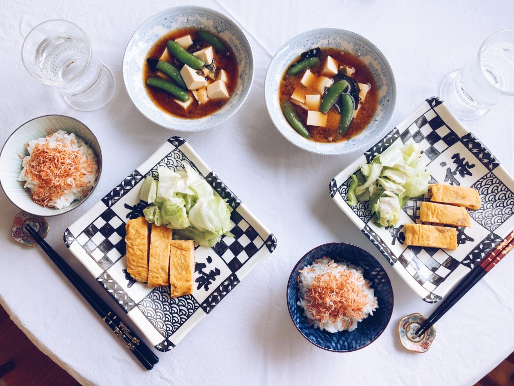 I’ve also enjoyed cooking. A homemade Japanese meal is real comfort food. It typically includes a bowl of rice, miso soup, salad, omelette, and grilled fish. I made miso soup and omelette, and added tiny dried shrimps on top of the rice.