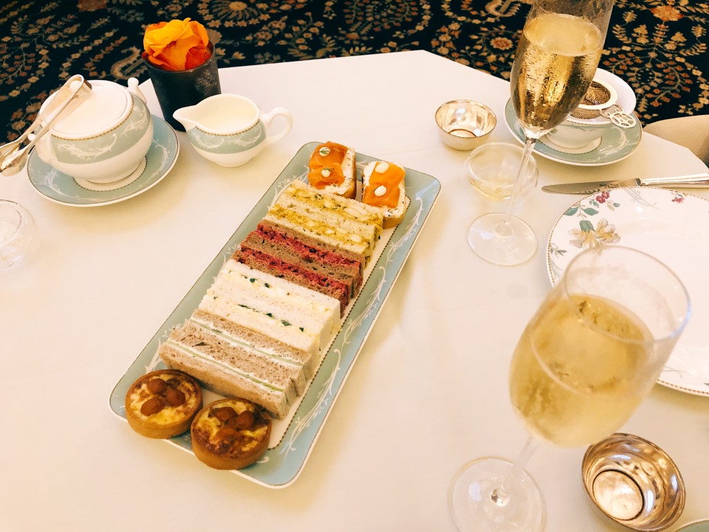 The Thames Foyer room is the place for Afternoon Tea at The Savoy. The atmosphere is exquisite, but at the same time, very relaxing. On my 40th birthday, we booked a table for 5 pm. We selected traditional high tea because it consists mostly of savoury dishes. Another option, traditional afternoon tea, has more sweet pastries.