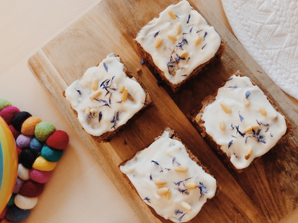 The texture of the carrot cake was so soft and light, and the taste was beautiful. Nuts and dry flower petals were sprinkled on the top, which looked lovely. I immediately decided to reproduce the cake at home (but not a vegan version).