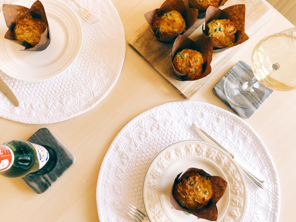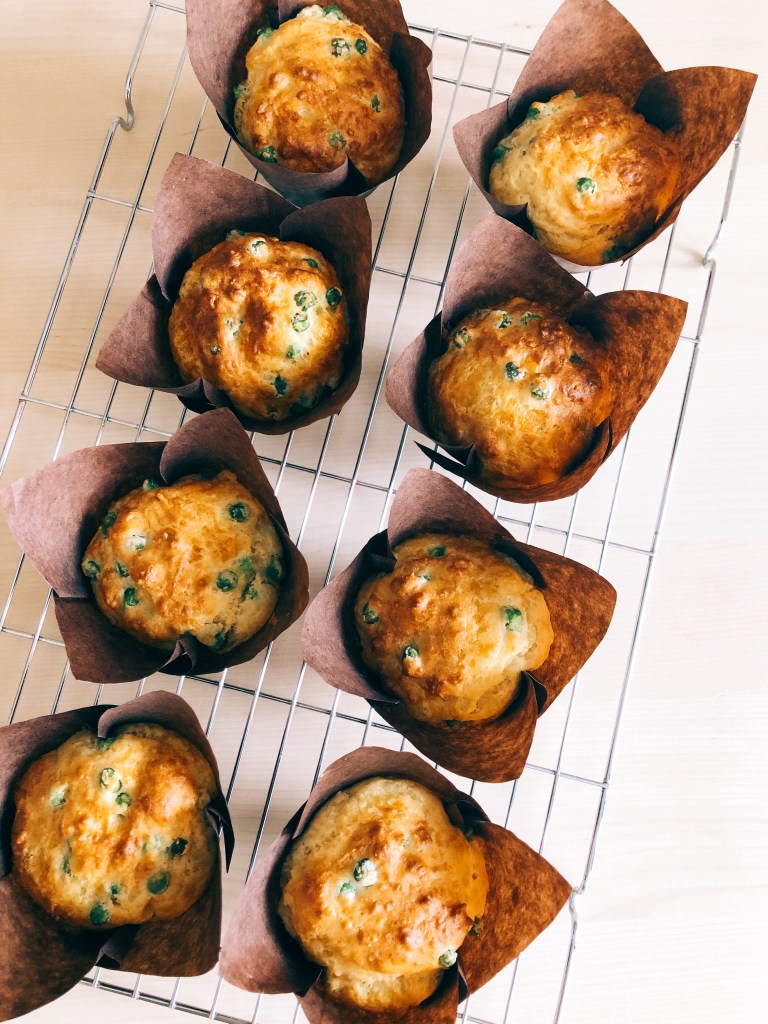 Savoury muffins are often referred to as a lunchbox idea. I’m a big fan of them and love cheesy muffins in particular. Luca and I very often enjoy cheese and pea muffins as appetisers served with a glass of white wine or Prosecco at the weekend.