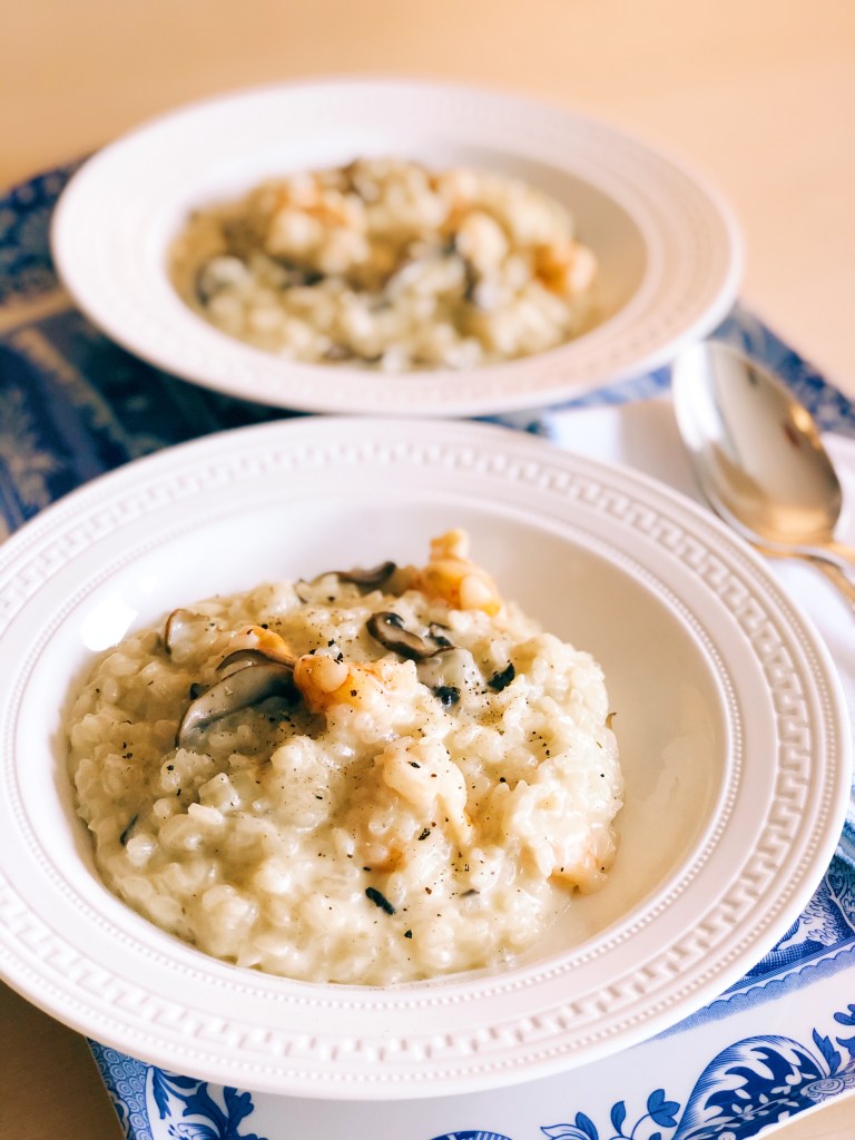 Creamy risotto is my all-time favourite meal. Because it is very easy and simple to cook in one pot, this is certainly a go-to meal on weekday evenings. This is my basic mushroom risotto recipe. I love adding ham or prawns to it, which gives a rich flavour.